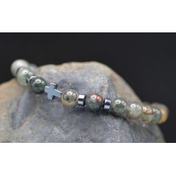 Bracelet-Eden Merry-Beaded-Cross-Bloodstone w/ Pra