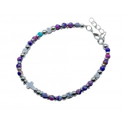 Bracelet-Eden Merry-Cross-Beaded-Purple/Turquoise
