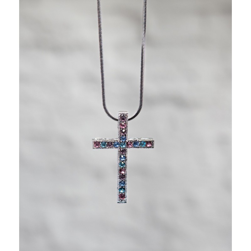 Necklace-Eden Merry-Cross-Pastel Crystal/Silver