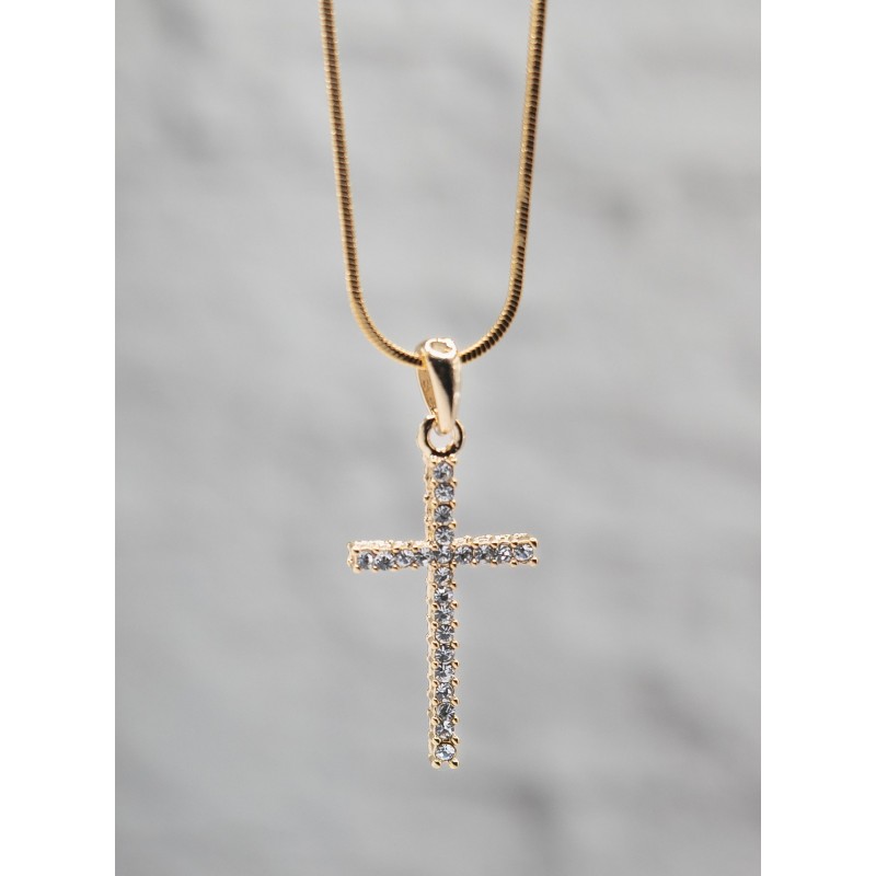 Necklace-Eden Merry-Cross-Gold/Crystal