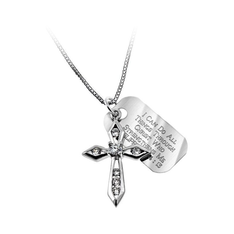 Necklace-CZ Big Makaira Cross-All Things (Phil 4:1 by Spirit & Truth