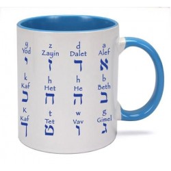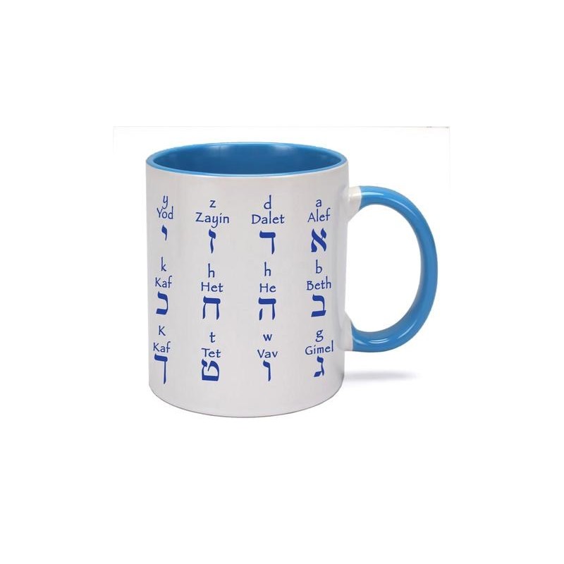 Mug-Blue And White Hebrew ABC (12 oz) (71188)