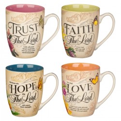 Mug Set-Hope Trust Faith Love-Floral (Set Of 4)