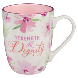 Mug-Budget-Pink Floral-Strength & Dignity-Prov. 31