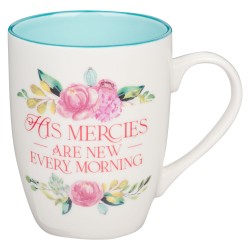 Mug-Budget-Teal Floral-Mercies Are New-Lam. 3:22-2
