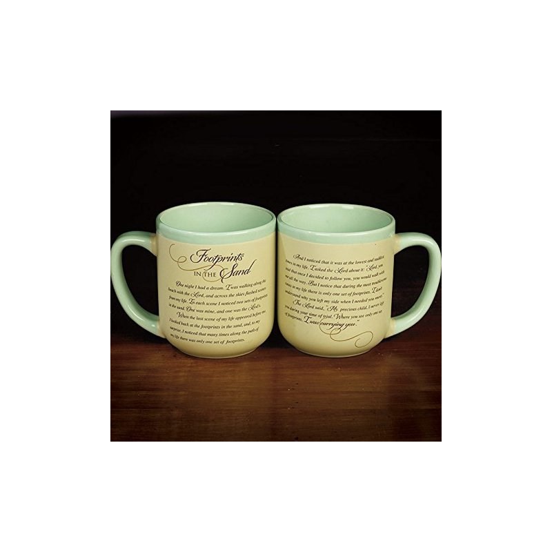 Footprints in the Sand Large Coffee Mug, Sea Green and Sand, 16 ounces