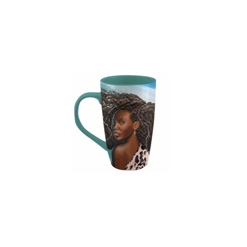A high-quality mug featuring a remarkable representation of black beauty, masterfully captured by artist Keith Conner. The mug's exterior and interior are both a deep teal.