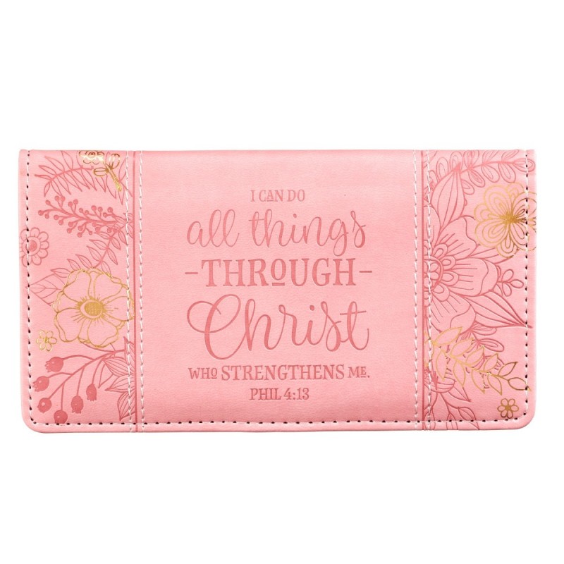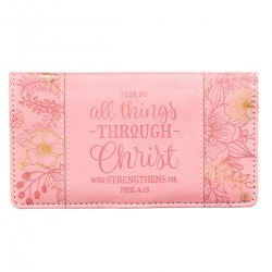This All Things Through Christ Checkbook Cover is a convenient way to keep those checks secure, and also serves as a reminder that the Lord is able to accomplish far more than we can fathom. The verse from Philippians 4:13 states, I can do all this through him who gives me strength. The coral color of this checkbook cover makes it a perfect gift for her. She will take comfort in knowing that the Lord is the ultimate sustainer and is able to equip her with the tools necessary to face anything she may fear.