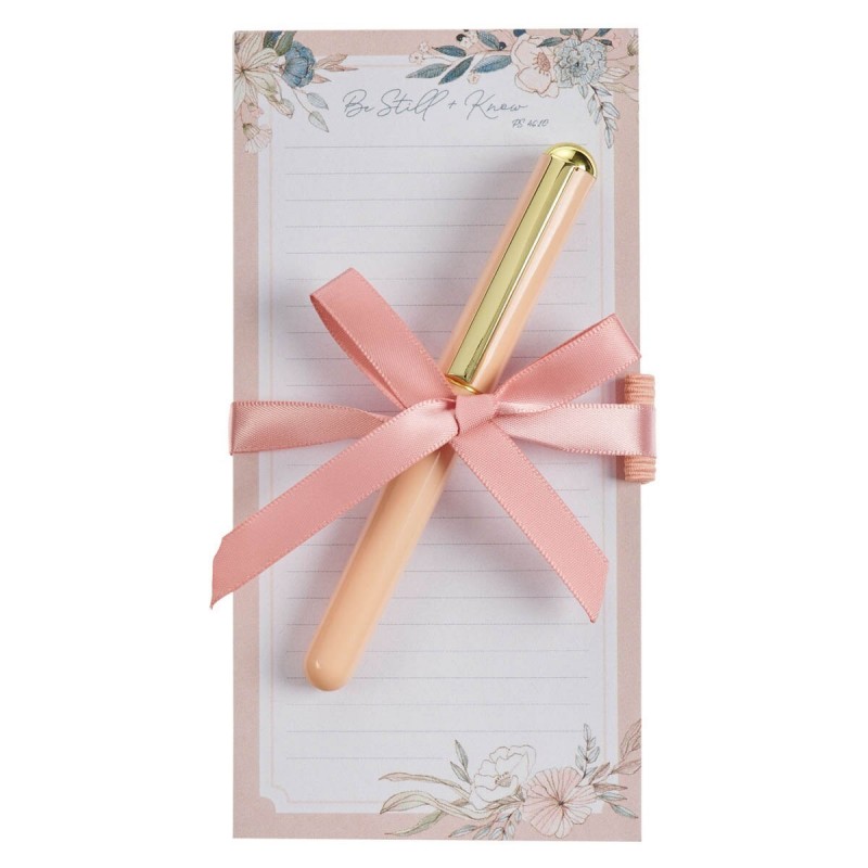 Magnetic Shopping List w/pen Be Still Pink/Blue Fl
