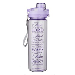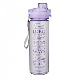 The "Trust in the Lord" Purple Plastic Water Bottle has a 25 ounce capacity, a webbed loop for carrying and a plastic push-button, flip-top lid with a locking mechanism - simply rotate the ring to lock / unlock. The entire lid can be removed for washing. The bottle design features stylized text from Proverb 3:5-6 in contrasting deep purple. Hand Wash Only Not Suitable For Hot Beverages 25 Oz. Capacity 10 Inch Tall Webbing Carry Loop Locking Flip-Top Lid Wide Mouth Bottle Plastic BPA Free / Food Grade Safe Freezer Safe Hand Wash Only Not Suitable For Hot Beverage
