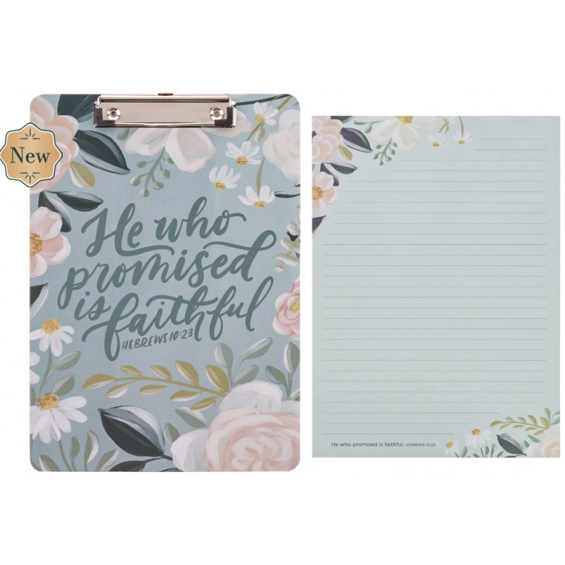 Clipboard w/Pad Blue Floral He Who Promised is Fai