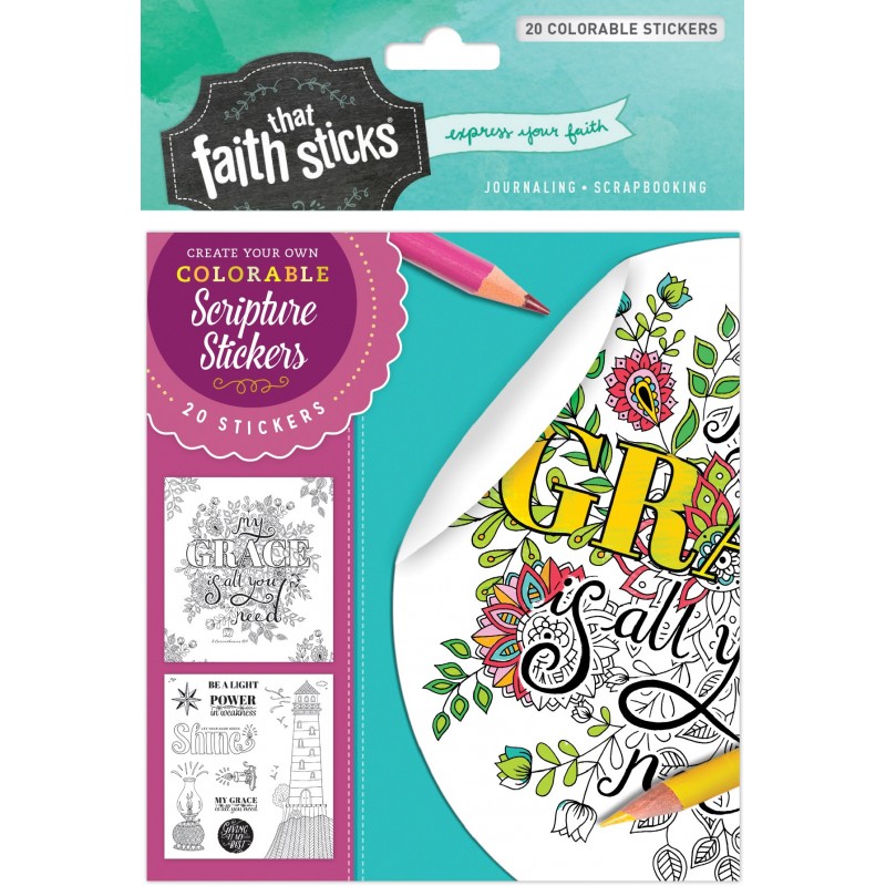 Capture the benefits of coloring and the creativity of journaling at the same time. Colorable stickers are a brand-new way to create and display art as a tangible reminder of Gods Word in daily life.Each package contains two sheets of each unique Scripture-related design (four sheets per package, 20 colorable stickers total) for use in scrapbooking, Bible journaling, card making . . . or just for fun!