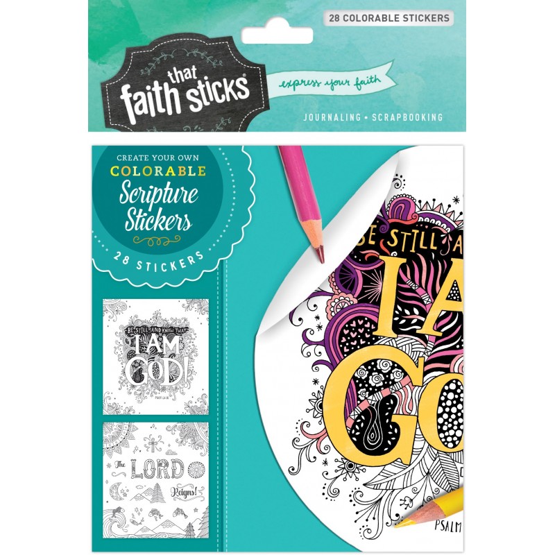Capture the benefits of coloring and the creativity of journaling at the same time. Colorable stickers are a brand-new way to create and display art as a tangible reminder of Gods Word in daily life.Each package contains two sheets of each unique Scripture-related design (four sheets per package, 28 colorable stickers total) for use in scrapbooking, Bible journaling, card making . . . or just for fun!
