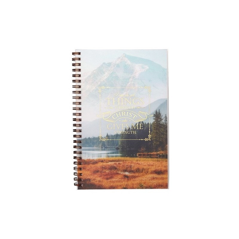 PRODUCT DETAILS Capture your prayers, takeaways from sermons, thoughts, and more in the All Things Through Christ Wirebound Notebook. This Christian wirebound notebook displays the encouraging verse, I can do all things through Christ who gives me strength from Philippians 4:13, and will fill you with hope each time you reach for the All Things Through Christ Notebook. Give this Christian gift to a loved one who is graduating from high school or college. The wirebound notebook also makes a wonderful birthday, Christmas, or just because present.