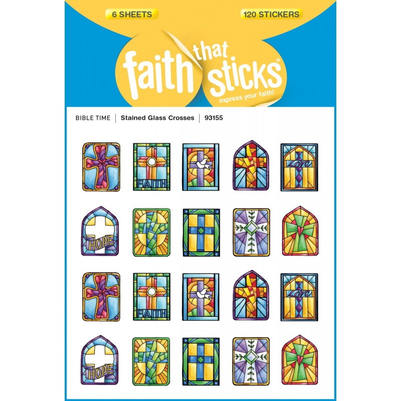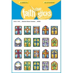 These stickers of stained glass crosses are beautifully colored with silver foil edges. Ten different designs make lovely embellishments on note cards and Easter crafts, or as rewards for Sunday school papers or childrens church. Just over " x " each. Six sheets, 20 stickers per sheet; 120 stickers per package.