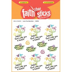 These whimsically decorated foil stickers feature a reflective design that pops polka dots when you move from side to side. Flowers and swirls accent the cheerful message: Smile! God loves you a bunch! Six large 1" x 1" flowers and sentiment, plus four smaller sayings and two accent stickers. Six sheets, 12 stickers per sheet; 72 stickers per package.
