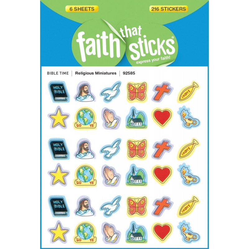 These mini stickers come in 12 different designs per sheet, each showing a different religious symbol, including: Bible, Jesus, dove, praying hands, church, and more. Great for rewards or attendance charts, each sticker is approximately " x ". A good value with six sheets, 36 stickers per sheet; 216 stickers per package.
