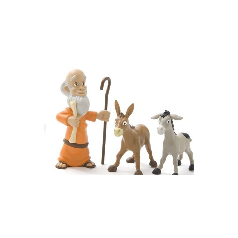 Features full color figurines that include Noah, a male donkey and a female donkey. From Tales of Glory, for interactive playtime fun and learning about the Bible. Each figure, fashioned of PVC, is child-safe and fits conveniently into the hands of small children, without sharp edges. Includes mini story book entitled "Noah's Ark"; packed in see-through blister box, ideal for pre-Christmas giving, for Sunday School lessons, and forbiblical Bible storytelling. Figures are approximately 3" tall, for children age 3 and older. Endorsed by Focus on the Family.