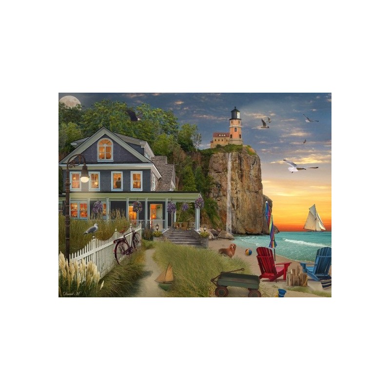 All of our signature jigsaw puzzles are made in the United States with recycled materials. Fully interlocking and randomly shaped pieces make for a pleasant puzzle building experience. Each jigsaw puzzle is produced on thick, quality board perfect for mounting and framing. This puzzle includes 550 pieces and measures 24" x 18" when completed. Artwork by David Maclean.