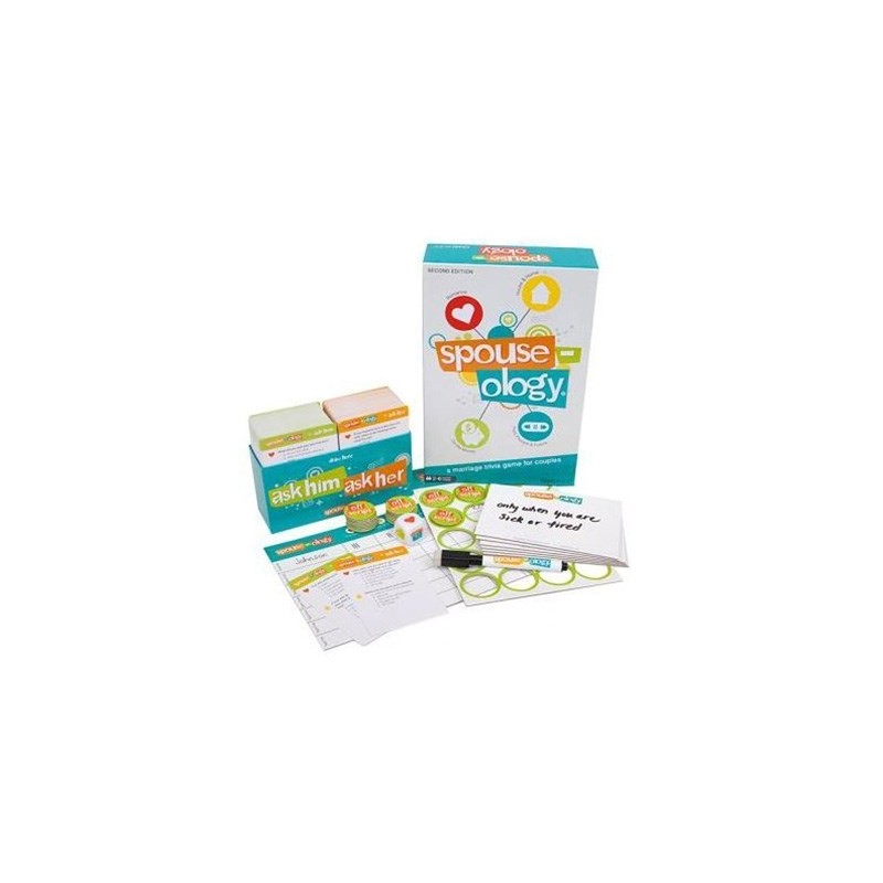 Spouse-ology challenges husbands to think like their wives and vice versa. While competing against other couples, your spouse will guess how you would answer questions from five different categories: Romance & Marriage, Home & Family Life, Just For Fun, Finances, & Stress.