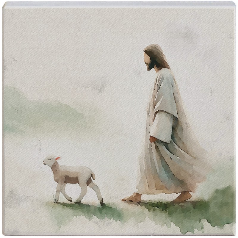 Small Talking Square-Jesus Walking Lamb (5.25 x 5.