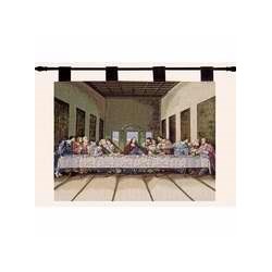 Biblical scene of the Last Supper as created by Leonardo da Vinci on woven tapestry wall hanging for display at home or church. Richly detailed in stunning color, a meaningful Christian gift for pastors as well as art lovers.