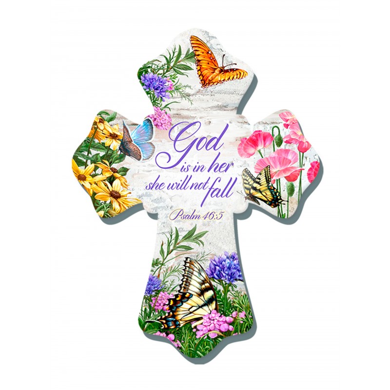 Wall Cross-Butterflies/God Is In Her She Will Not