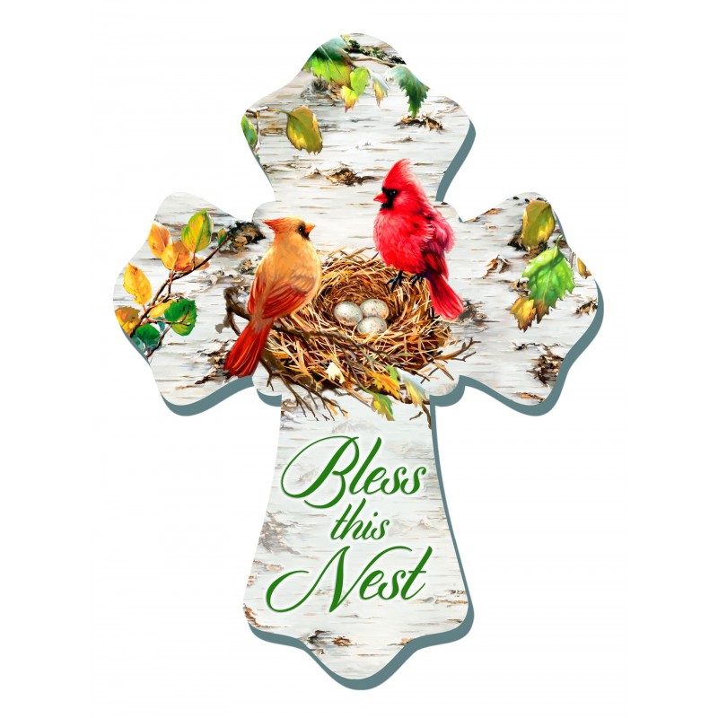 Wall Cross-Cardinals/Bless This Nest (6" x 8")
