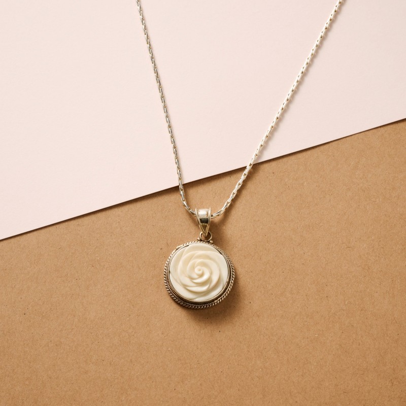 Bagaica Rose Carved Bone Necklace