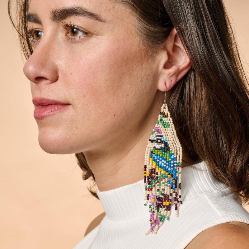 Beaded Bird Fringe Earrings