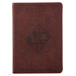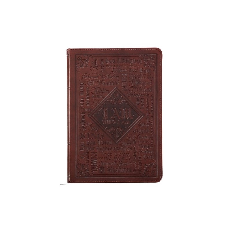 The LuxLeather Journal Names Of God has a LuxLeather Flexcover binding with I am who I am and the names of God heat-debossed on the cover. With 400 lined pages, the I Am Who I Am Journal features a Scripture verse at the bottom of each inside page, and the back of the brown LuxLeather journal includes the verse from Exodus 34:6, The Lord is a compassionate and gracious God, slow to anger and abounding in faithful love and truth. Size: 5.75" (W) x 8.25" (L) 400 Lined Pages Brown LuxLeather Flexcover Attached Ribbon Page Marker Heat-debossed Text