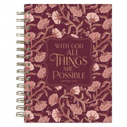 Journal Wirebound-With God Matt. 19:26-Pink Floral