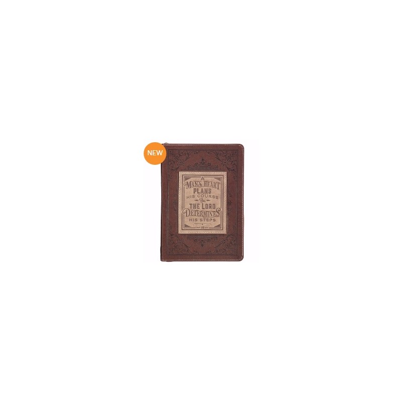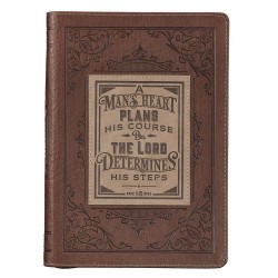 Rich Brown Journal A Man's Heart Collection Faux Leather Journal Flexcover 20 lb bond weight paper (commonly used for stationery) 400 Lined Pages Zippered Closure Packaged in a Self-seal Bag Scripture Verse on Each Page Presentation Page for Gift-giving Size: 9" x 6.4" x 0.79" (228 x 163 x 25mm)