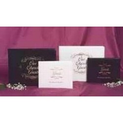 Homes, churches, weddings and funerals all provide occasion for us to welcome and receive our honored guests. Broadman offers you a black guest book with a bonded leather padded cover, rounded corners, gilded gold page edges, and ribbon marker. This 46-page book lays flat for the easy signing of over 600 names and addresses. All pages have We welcome you in the Lord" at the bottom of the page and are acid free. This 7 3/4" x 5 3/4" book is black with gold lettering on the cover and comes in a gift box."
