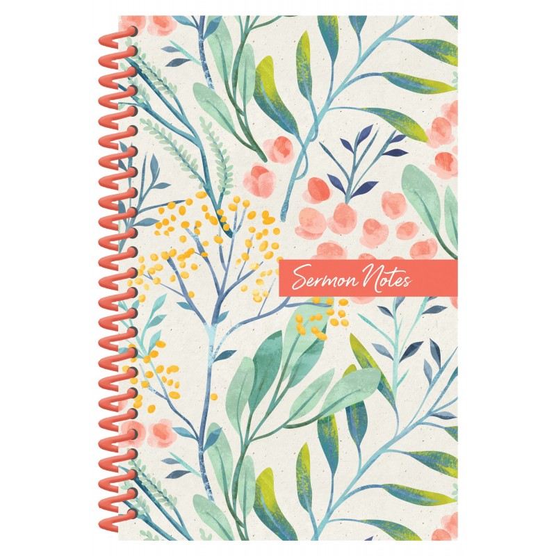 The Perfect Keeper of a Year's Worth of Sermon Notes! This attractive spiral-bound journal offers 140 pages of writing space, with helpful prompts for your thoughts organized. Featuring generous space for note-taking and a user-friendly lay-flat feature, this notebook is sure to become a must-have in the pocket of your Bible cover!