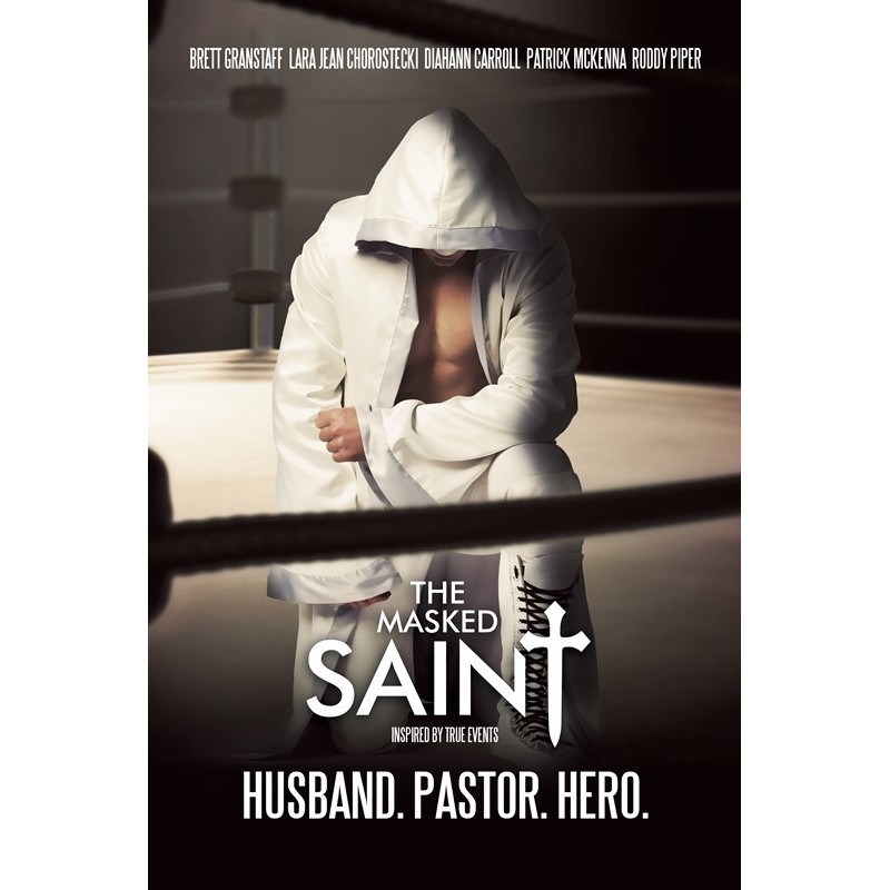 The Masked Saint follows the journey of former professional wrestler Chris Samuels, who retires from the ring to settle down as a small town pastor. When the pastor witnesses rampant problems in the community, he decides to moonlight as a masked vigilante fighting the injustice. While facing crises at home and at the church, the Pastor must evade the police and somehow reconcile his secret, violent identity with his calling as a pastor. Inspired by true events, The Masked Saint is based on the highly popular book of the same name by Chris Whaley. It was filmed entirely in Northern Ontario, and features icons of the screen like Diahanne Carroll and Rowdy Roddy Piper alongside stars Brett Granstaff and Lara Jean Chorostecki.